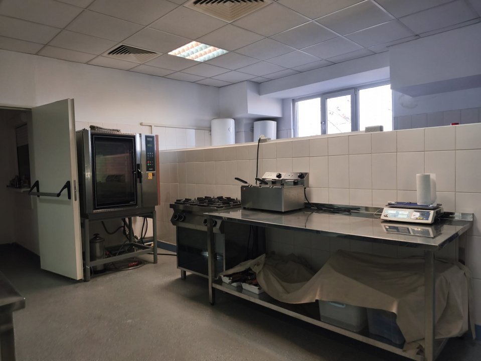 bucătărie ~200 mp, complet utilată, dotată cu frigidere și echipamente profesionale;
