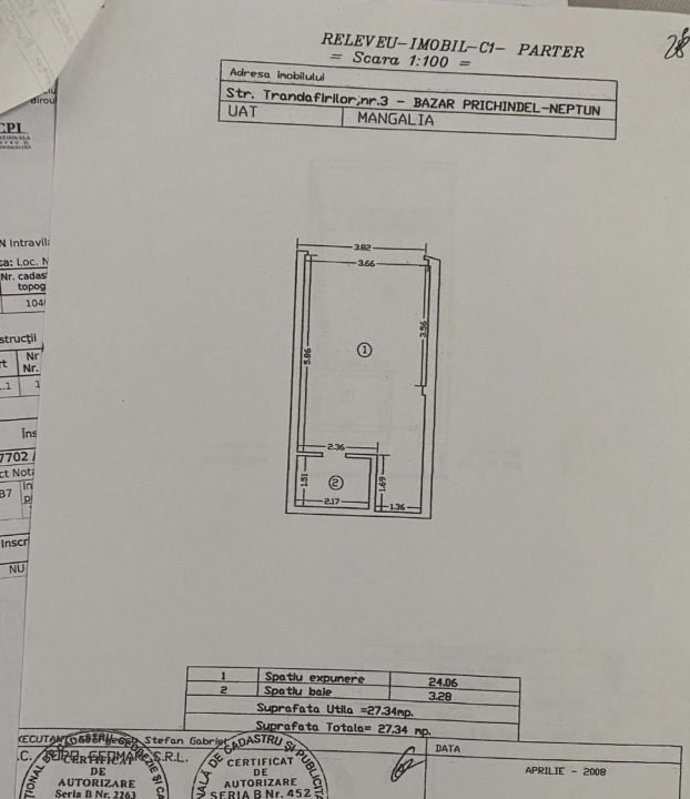 Suprafata: Parter Spatiu Comercial: 27,34 mp | Garsoniera: 32,27 mp, care 5,8 mp balcon