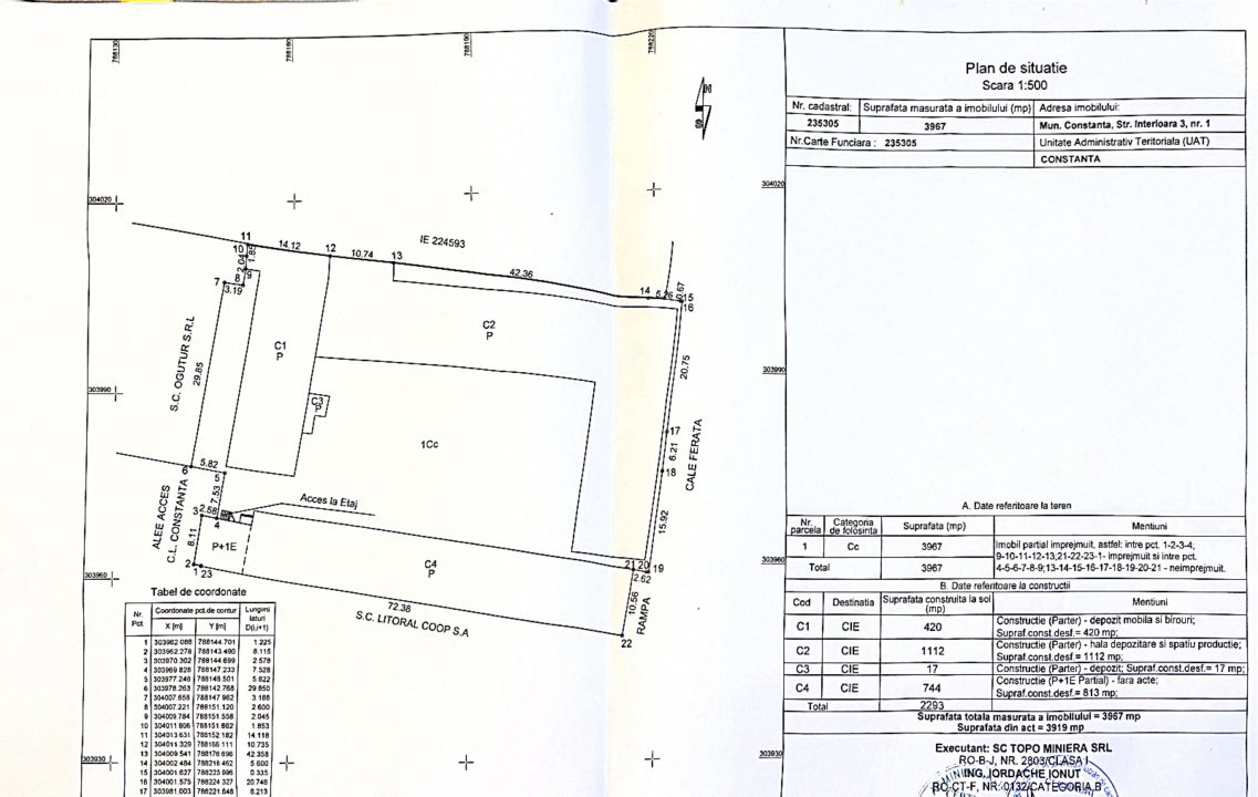 • 🚛 Acces auto/TIR facil, platforme betonate, curte amenajată dar si acces pe strada secundara, pietruita si betonata