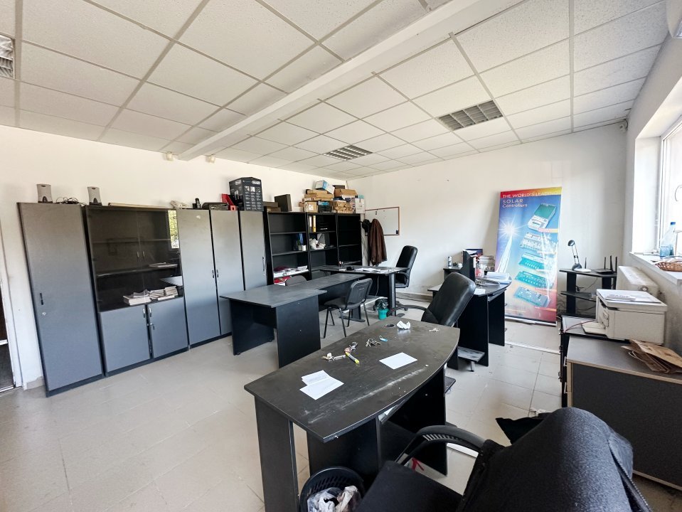 Clădirea principală este pe parter, are o formă de T și este compartimentată în mai multe încăperi funcționale, dispune de un hol central mare și acces pe toate laturi. În incintă se află și un garaj din beton, înalt și spațios, potrivit pentru service auto, depozitare sau diverse activități de producție. Pe lângă acestea, proprietatea mai include o clădire de birouri independentă, ideală pentru activități administrative sau tehnice.
