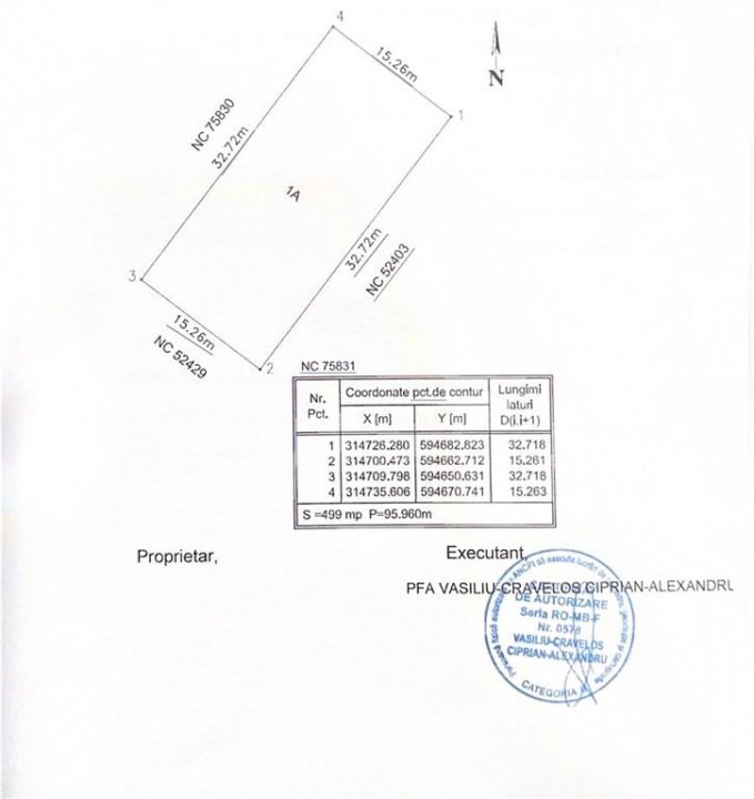 Terenul dispune dosar finalizat pentru depunere in vederea obținerii autorizației de constructie pentru o cladire P + 1.