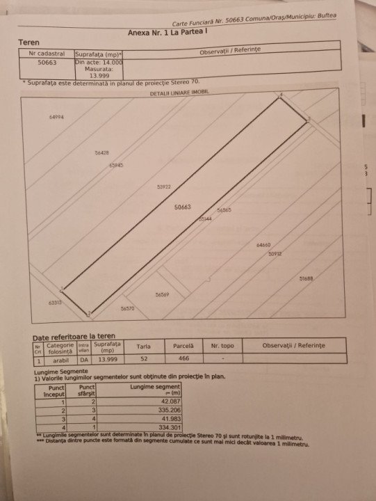Proprietatea beneficiază de o deschidere la drum de 42 metri și o lungime de 335 metri, ceea ce oferă multiple posibilități de dezvoltare.