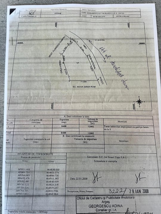 Vând teren intravilan în suprafață de 6.500 m², situat strategic la drumul european E81, între Pitești și Râmnicu Vâlcea, în localitatea Morărești, în zona km 35. Terenul beneficiază de o deschidere impresionantă de 144 metri liniari la șosea, oferind vizibilitate excelentă și acces facil.