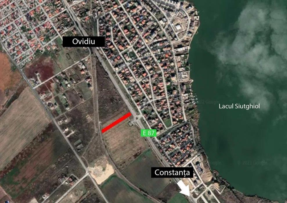 Terenul cu suprafata generoasă de 2.500 mp și deschidere de 14,33 m la DN2A ce ofera vizibilitate excelentă și acces rapid către Constanța.