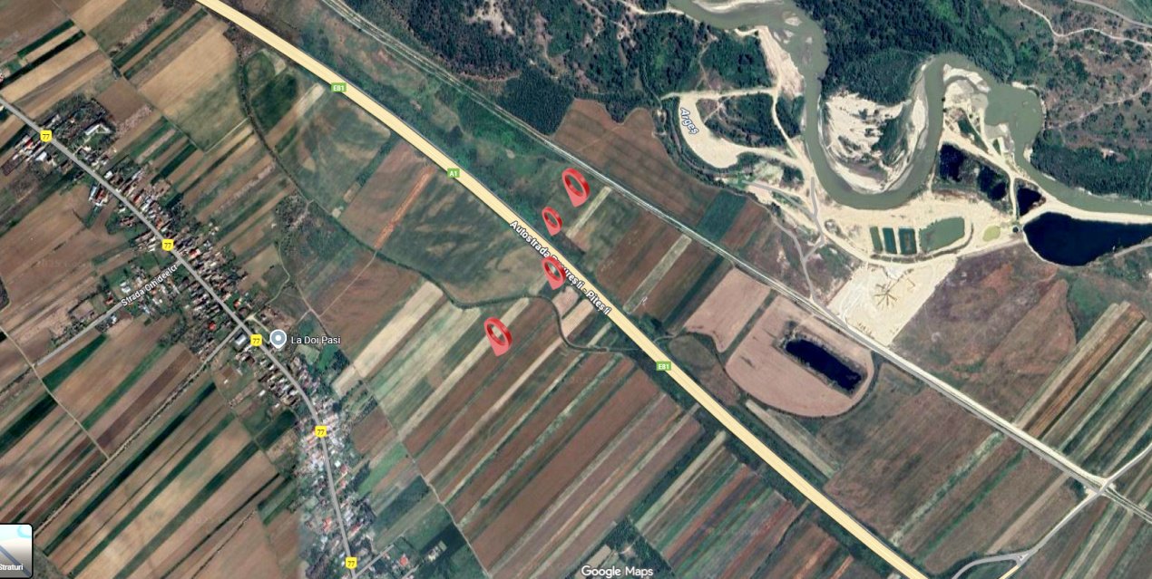 - primul are 24.600 mp, amplasat pe sensul de mers spre Pitești,